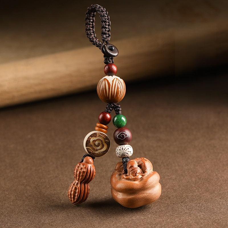 Embrace the ancient power of Feng Shui with our meticulously carved Peach Wood Keychain. Peach wood is revered in Taoist traditions as a potent protector, capable of dispelling negative energy, evil spirits, and misfortune. This keychain is not just an accessory; it's a portable shield of spiritual security for your home, car, and personal space.