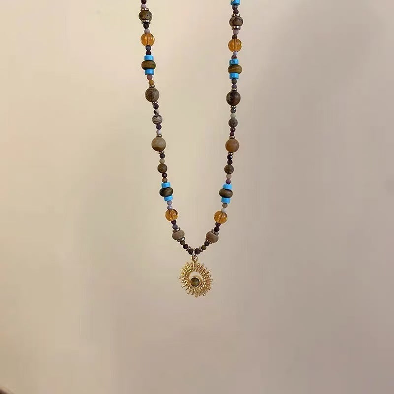 Harmonize your energy with this beautiful Sunflower Tiger Eye Beaded Necklace. Meticulously hand-strung with genuine tiger eye stone seed beads and a vibrant sunflower pendant, this piece is more than an accessory—it's a tool for intentional living.