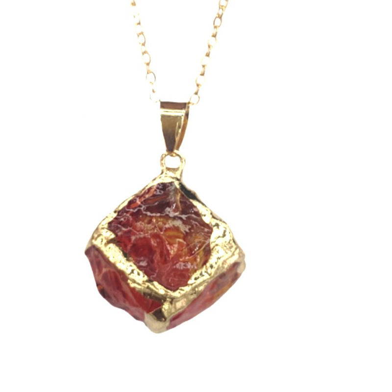 Channel natural harmony with our Irregular Natural Gemstone Chip Pendant. This 19x19mm pendant features a mix of raw, unpolished crystal chips set in a warm gold-plated brass rim, celebrating the beauty of imperfection.