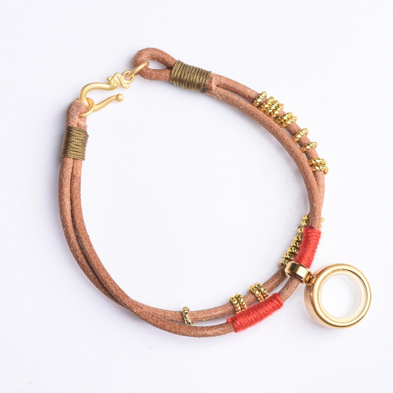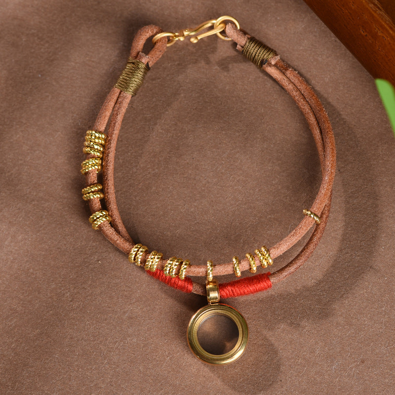 This handwoven leather bracelet is more than an accessory—it's a portable altar. Meticulously crafted with soft, durable leather, it securely holds a traditional Tibetan Gau (amulet box), designed to carry sacred mantras, relics, or blessings close to your skin.